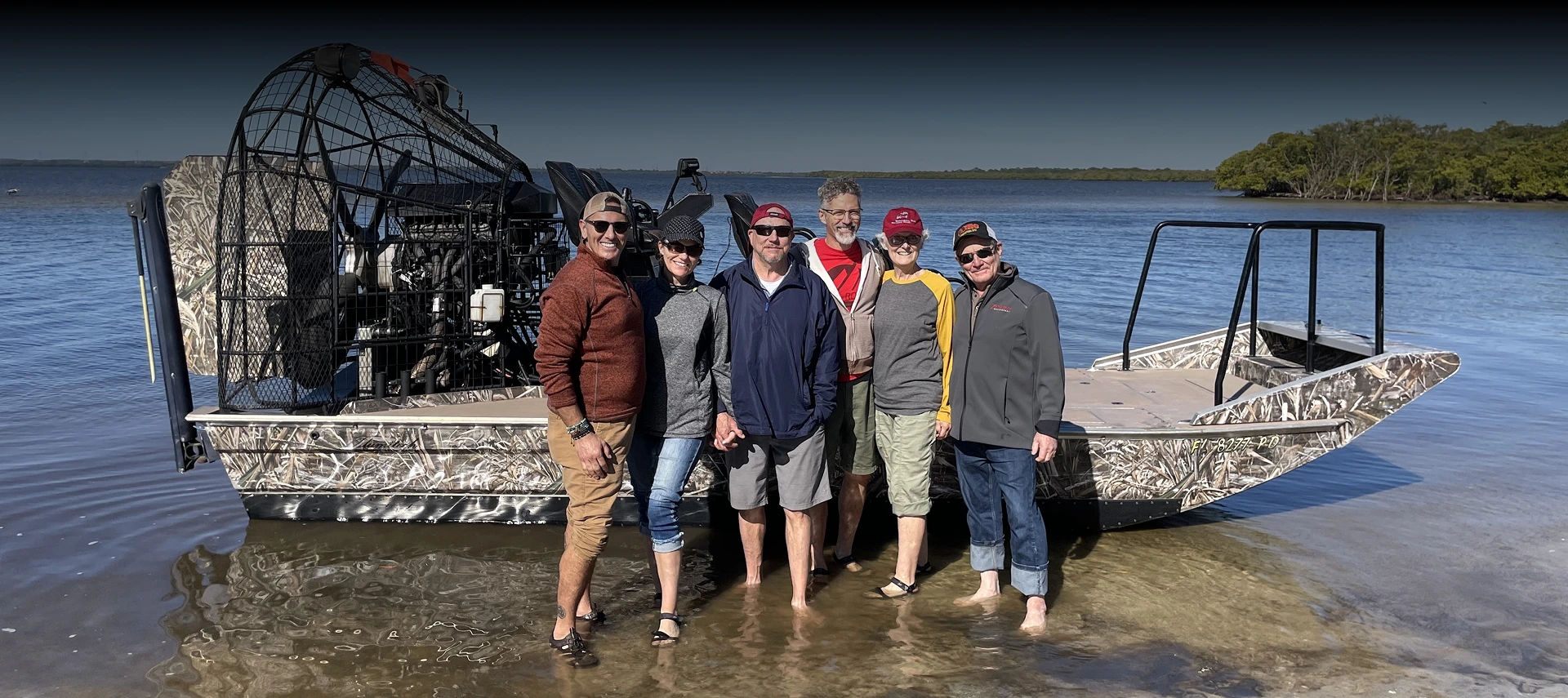 Your adventure takes place aboard a custom-built 21-foot Alumitech Airboat, powered by a high-performance Chevrolet LS engine delivering over 550 horsepower.